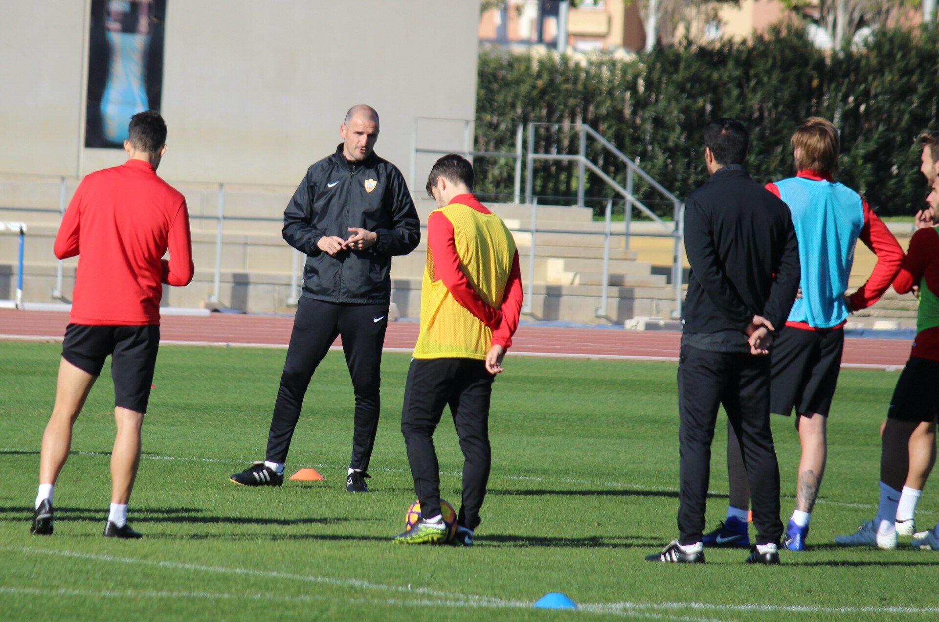 Para comenzar, la plantilla tuvo sesión de vídeo y, posteriormente, sobre el Anexo del Estadio de los Juegos Mediterráneos, realizó un trabajo físico con un circuito de resistencia y seguidamente llevó a cabo ensayos tácticos pensando en el encuentro del domingo y en el rival que tendrá delante.