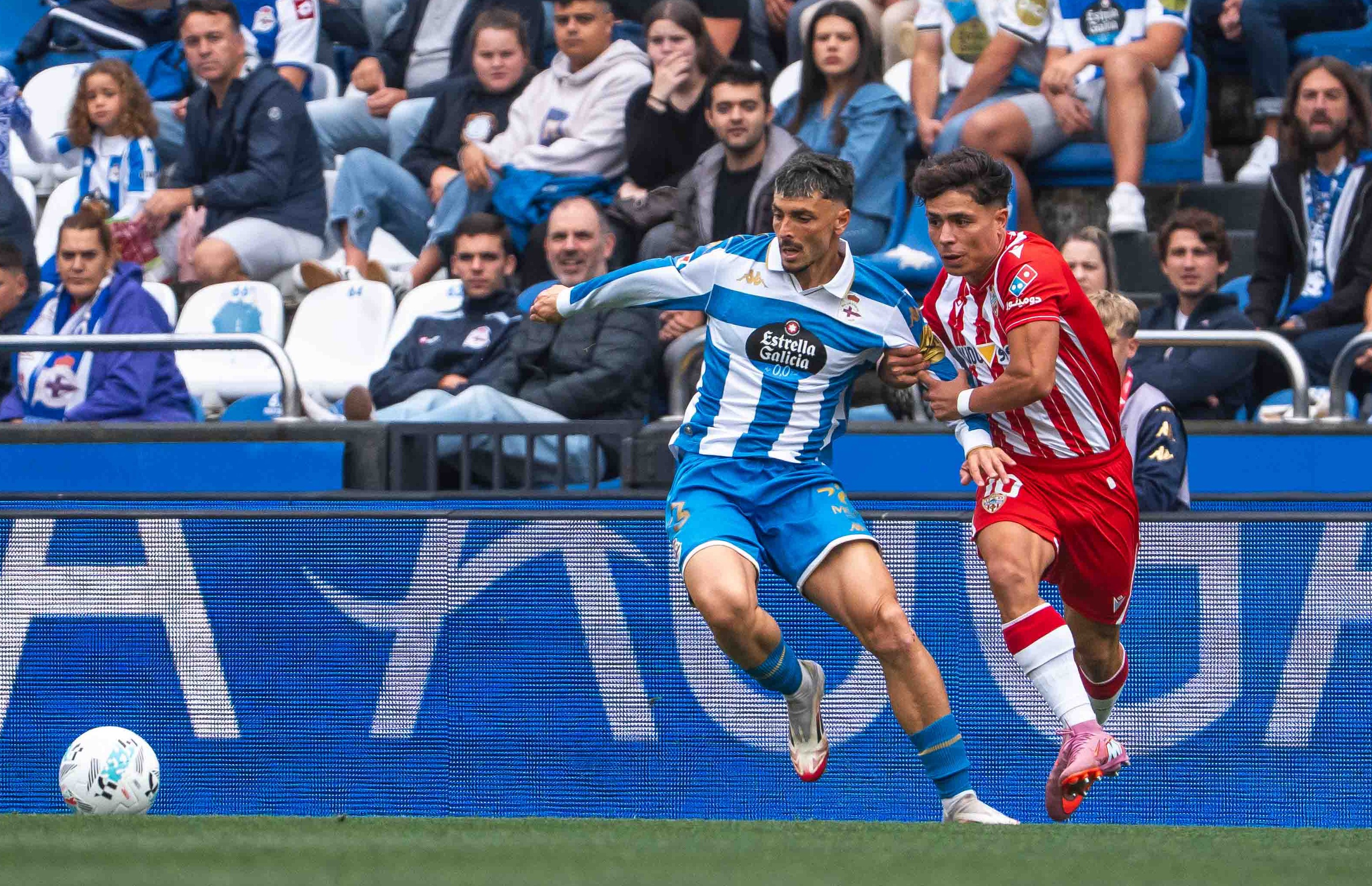 The match kicked off with both sides displaying quality and intensity, as UD Almería aimed to be the first team to break Deportivo’s unbeaten record. In a competitive first half, the Rojiblancos created several chances, while maintaining solid defensive organization. In the 22nd minute, Baptistão provided a well-timed pass to Nico Melamed, whose shot was blocked for a corner. A few minutes later, Bonini headed in from a set-piece to give Almería the lead at 0-1. Despite another promising opportunity in the 29th minute, where Arribas' effort was saved by Deportivo's goalkeeper, Germán Parreño, the Rojiblancos went into the break with a deserved advantage.