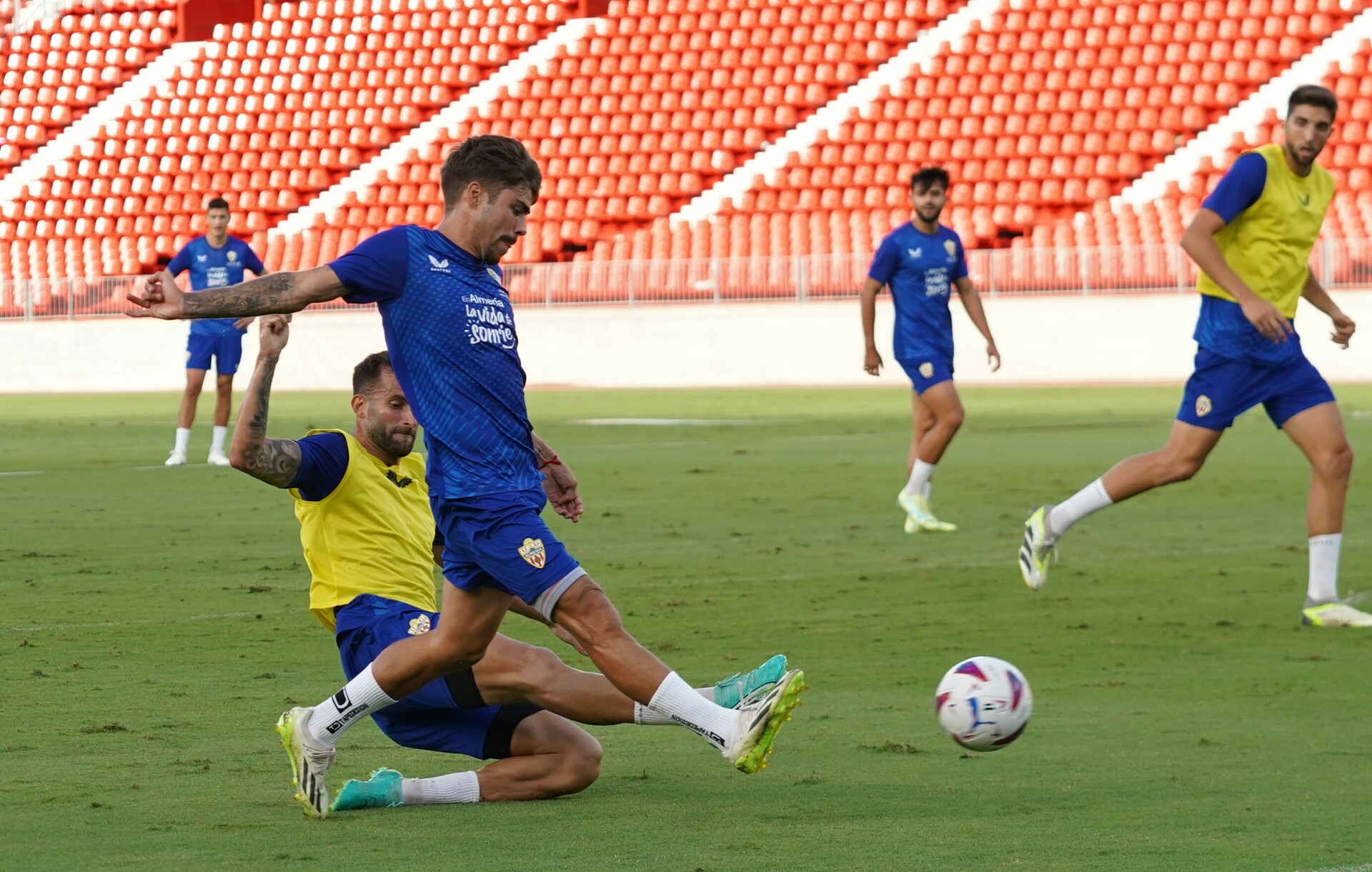 Una vez realizados los actos “protocolarios” la plantilla se ha puesto a trabajar, y además de forma muy intensa para ir mejorando conceptos de cara a cuando se reanude el campeonato. Recordemos, en este sentido, que el Almería afrontará su próximo compromiso de Liga el domingo, 17 de septiembre, a las 16,15 horas, en Villarreal.